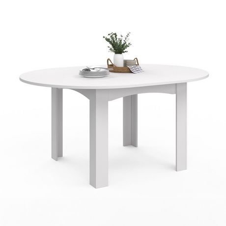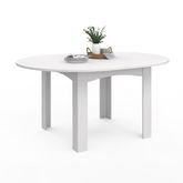 N'hésitez plus et faites place au style contemporain dans votre cuisine ou votre salle à manger avec cette la table à manger ronde DONA !Cette table extensible blanche deviendra rapidement un élément phare de votre pièce dont vous ne pourrez plus vous passer ! Idéale pour les petits comme les plus grands espaces, la table à manger DONA avec son plateau extensible gain de place vous permettra de passer d'une capacité de 4 à 8 personnes en un instant grâce à sa rallonge de 40 cm !Pratique et robuste, elle trouvera facilement sa place dans votre intérieur tout en garantissant une vraie stabilité !Ses courbes arrondies vous assurent d'être confortablement installé autour d'un repas convivial ou même d'un jeu de société avec votre famille ou vos amis.Optez pour cette table multifonction et design, parfaite pour le quotidien et les grandes occasions !Dimensions de la table à manger extensible ronde DONA 4-8 personnesDimensions globales : Longueur 110-150 cm x largeur 110 cm x Hauteur 75 cmDimensions des pieds : L. 10 cm x l. 10 cmEspace entre les pieds : 62 cmDimension de la rallonge : L. 110 cm x l. 40 cmMatériaux : Particules de bois (PB) mélaminé et MDFColoris : BlancÀ monter soi-mêmeCe modèle existe également en version rectangulaire au format rectangulaire 80-160 cm et 110-220 cm.Retrouvez l'ensemble de notre collection contemporaine sur notre boutique en ligne !