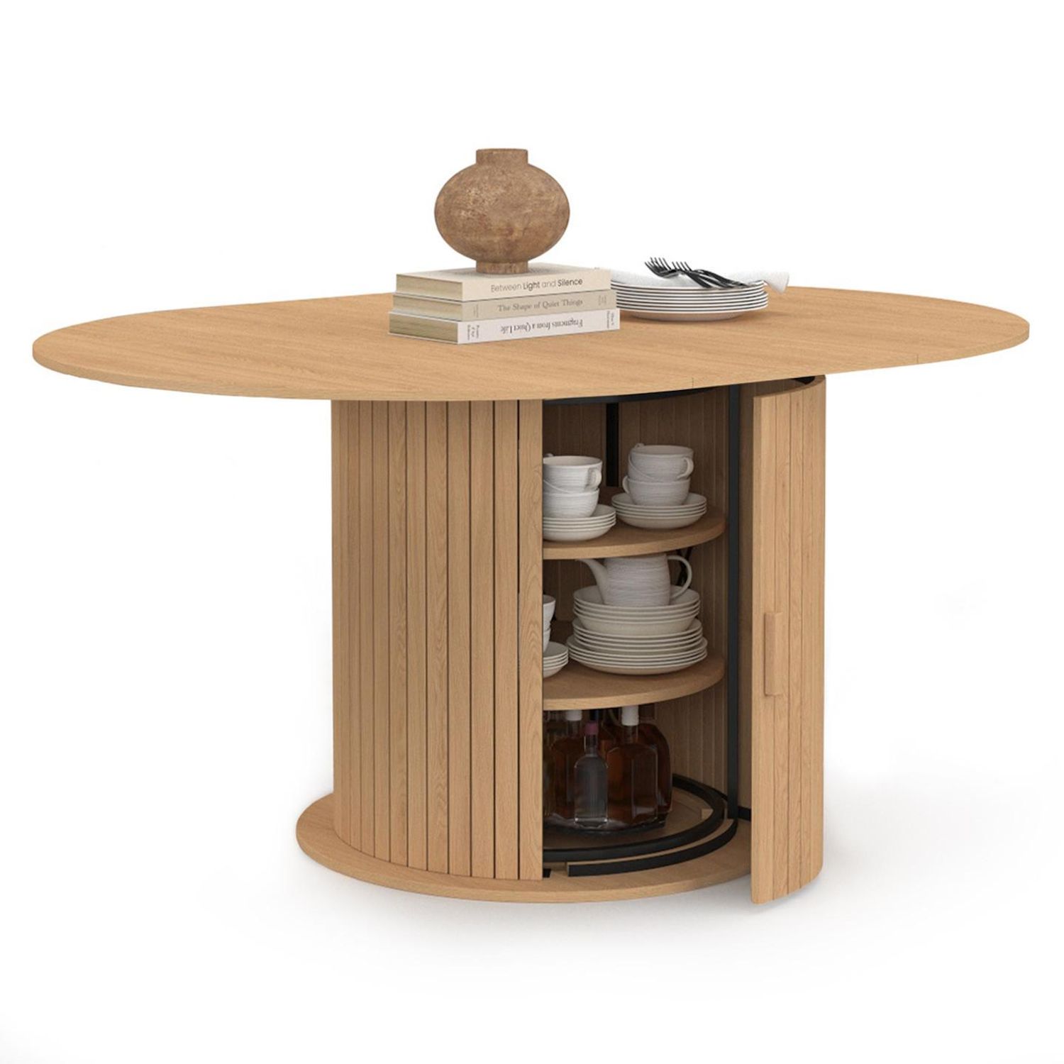 Table à manger extensible ronde JULIETTE 4-8 personnes pied lattes avec rangement 110-150 cm
