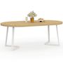 Avec son design industriel et stylé, la table à manger extensible SELMA incarne l'harmonie entre esthétique et fonctionnalité.Grâce à sa fonction extensible, cette table ronde peut accueillir confortablement jusqu'à 10 personnes faisant d'elle le choix parfait pour un repas en famille ou entre amis. Sa forme ronde encourage la convivialité et les échanges entre vos invités.La couleur bois de son plateau en particules associé aux pieds en métal blanc apportera un caractère chaleureux et accueillant tout en conférant stabilité et robustesse à votre table repas. De plus, le design travaillé de son piètement lui donne un look ultra tendance ! Que vous ayez un intérieur moderne ou plus altique, la table ronde SELMA s'intégrera parfaitement à votre déco grâce à son look intemporel. Dans une salle à manger ou dans une cuisine, elle sera idéale pour créer un espace repas chaleureux ! Dimensions de la table à manger ronde SELMA bois et blanc 110-200 cmDimensions globales : Longueur 110-200 cm x largeur 110 cm x Hauteur 75 cmDimensions pieds : 6 x 3 cmEpaisseur du plateau : 5 cm Rallonge (x2) : 45 x 110 cm Matériaux : Particules de bois mélaminé et métalColoris : bois et blancCapacité : 4 à 10 personnesÀ monter soi-mêmeDécouvrez également toutes les tables à manger rondes sur notre boutique en ligne !
