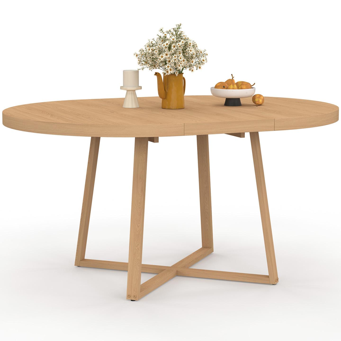 Table à manger extensible ronde SELMA 4-8 personnes bois effet hêtre 110-150 cm