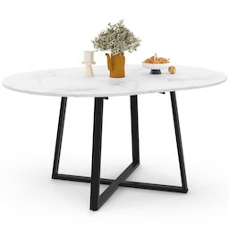 Table à manger extensible ronde SELMA 4-8 personnes noir et plateau marbre blanc ALASKA 110-150 cm