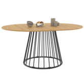 Table à manger extensible ronde YUNA 4-8 pers plateau bois et pied filaire en métal 110 - 150 cm
