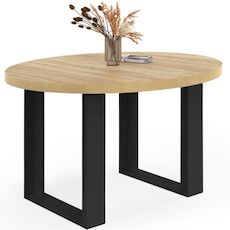 Apportez une touche de style design et tendance à votre salle à manger avec la table ronde PHOENIX bois et noir qui s'intégrera parfaitement à votre intérieur !La table PHOENIX 4 personnes est munie d'un plateau rond de diamètre de 110 cm effet bois qui invite à la discussion ! Sa forme ronde conviviale s'adaptera à toutes vos occasions : pour un repas solo en toute tranquillité ou pour discuter entre amis autour de la table. Avec ses pieds larges et son grand plateau épais, la table bois et noir industrielle PHOENIX est d'une grande stabilité et très robuste.Cette table à l'aspect massif aux lignes épurées sera la pièce maîtresse de votre salle à manger. Sa forme arrondie lui apporte finesse et élégance. Son style lui donne un aspect industriel qui s'adapte parfaitement aux univers altiques et contemporains. La combinaison des coloris bois et noir et d'un matériau chaleureux est une association parfaite pour apporter un look chic et sobre à votre salle à manger.Dimensions de la table de salle à manger ronde PHOENIX bois et noirDimensions globales : Longueur 110 cm x largeur 110 cm x Hauteur 75 cmÉpaisseur totale du plateau : 5 cmDimensions d'un pied : Longueur 9,5 x largeur 56 x Hauteur 64 cm Matériaux : Panneaux de particules mélaminésColoris : bois et noirÀ monter soi-mêmeDécouvrez l'ensemble de notre gamme PHOENIX sur notre boutique en ligne.