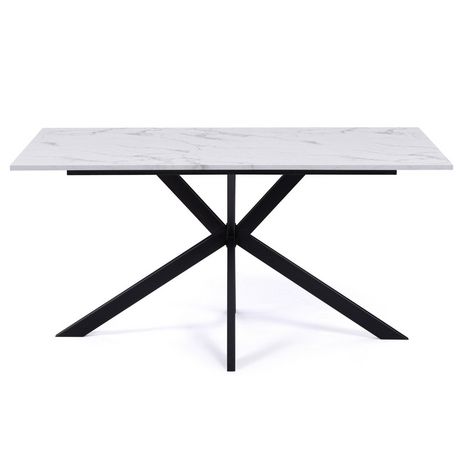Table à manger rectangle ALIX 8 personnes pied araignée noir et plateau effet marbre blanc ALASKA 160 cm