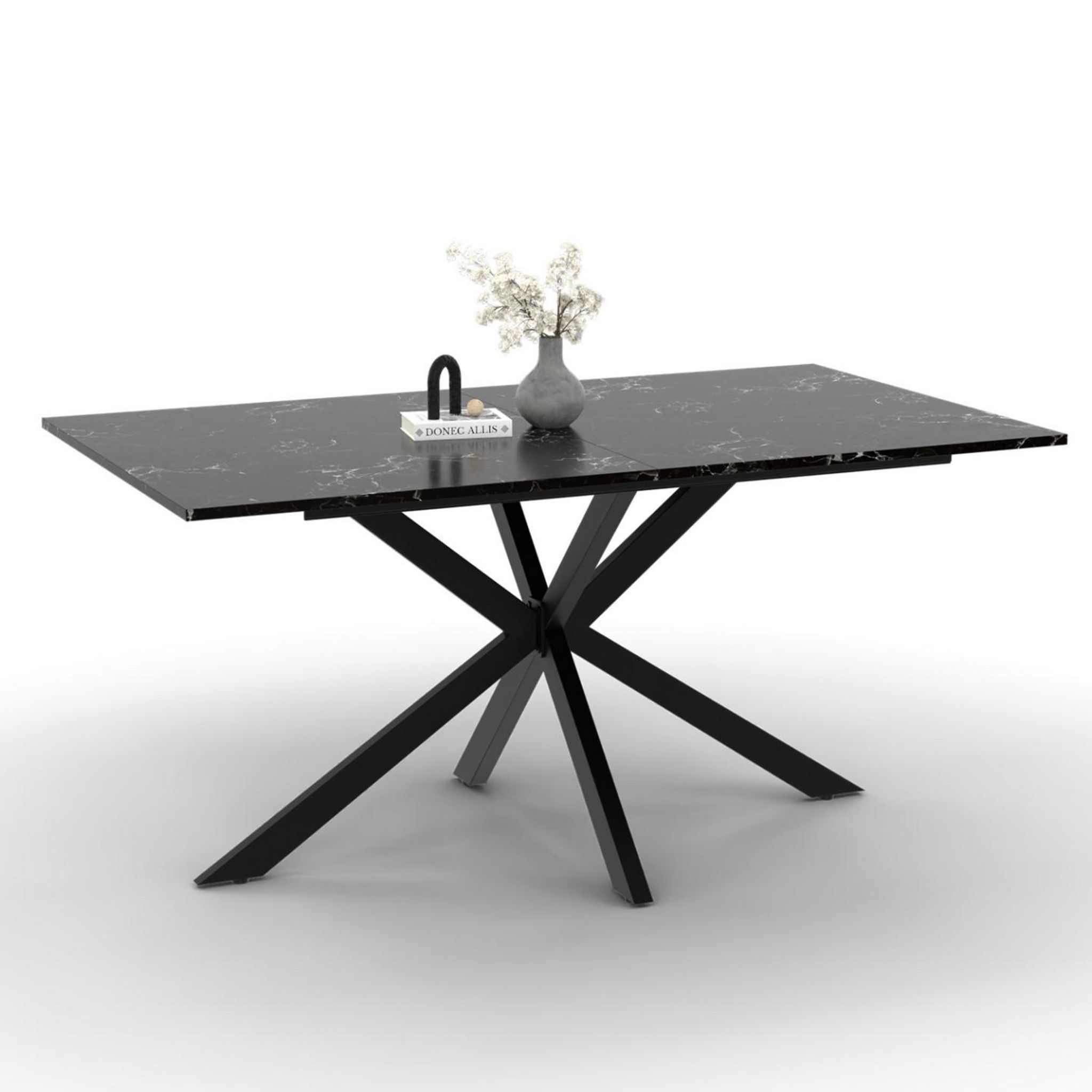 Table à manger rectangle ALIX 8 personnes pied araignée noir et plateau effet marbre noir ALASKA 160 cm