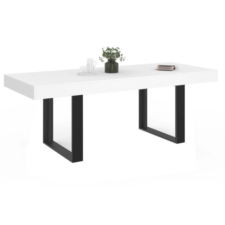 Vous aimez partager de bons repas à plusieurs en famille ou entre amis ? La table à manger 200 cm PHOENIX en bois blanc est faite pour vous !Grâce à son grand plateau en particules de bois mélaminé, vous pourrez accueillir jusqu'à 8 convives et profiter de bons dîners tous ensemble.Avec ses pieds re