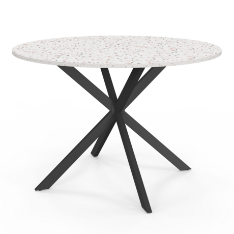 Table à manger ronde ALIX 6 personnes pied araignée noir plateau effet terrazzo SIMONE 110 cm