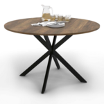 Table à manger ronde ALIX plateau HAWKINS 6 personnes pied araignée bois foncé et noir 110 cm