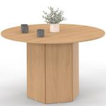Laissez-vous séduire par cette table à manger ronde et son piétement hexagonal hyper original qui sublimera votre pièce à vivre !Ses dimensions astucieuses, avec son plateau de 110 cm de diamètre, vous permettent d'accueillir jusqu'à 6 convives. Une table idéale pour des moments conviviaux en famille ou entre amis ! De plus, sa forme ronde design facilite la circulation au sein de la pièce.Pratique et élégante, elle répondra à tous vos besoins ! Que ce soit pour organiser un dîner en famille ou pour travailler sur votre ordinateur, cette petite table à manger saura combler toutes vos attentes.Cette table se fondra à merveille dans tous les types d'intérieur en y apportant une atmosphère chaleureuse grâce à son coloris bois. Son piétement original hexagonal apportera, de son côté, une touche sophistiquée.Son pied central en panneaux de particules lui confère stabilité et robustesse, sans oublier le côté esthétique ! Optez pour le style moderne et craquez pour la table ronde 6 personnes BERTHE!Dimensions de la table à manger BERTHE ronde pied hexagonalDimensions globales : Longueur 110 cm x largeur 110 cm x Hauteur 75 cmDiamètre du pied : 55 cm Matériaux : Panneaux de particules de bois mélaminéColoris : Bois Plateau coupé en deux partiesPeut accueillir jusqu'à 6 convivesÀ monter soi-mêmeDécouvrez l'ensemble de notre collection moderne sur notre boutique en ligne !