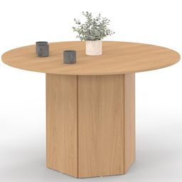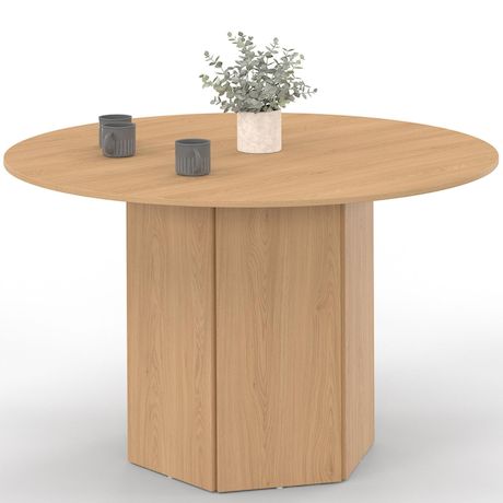 Table à manger ronde BERTHE 6 personnes pied hexagonal bois effet hêtre 110 cm
