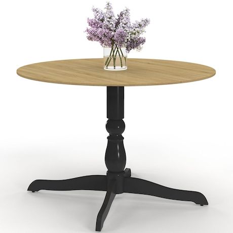 Table à manger ronde MARIE 4-6 personnes bois façon hêtre et noir 110 cm