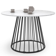 Table à manger ronde YUNA 6 personnes pied filaire en métal noir et plateau effet marbre blanc ALASKA 110 cm