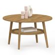 Table basse 70 cm HANAE ronde bois façon hêtre et plateau effet naturel cannage