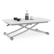 Table basse extensible relevable en table à manger rectangulaire URBANA plateau blanc pied chrome