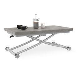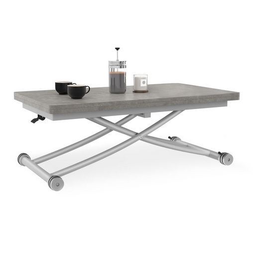 Table basse extensible relevable en table à manger rectangulaire URBANA plateau effet béton pied gris