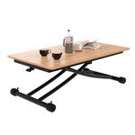 Table basse fixe relevable en table à manger rectangulaire URBANA plateau façon hêtre pied noir design industriel