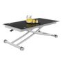 Table basse fixe relevable en table à manger rectangulaire URBANA plateau verre trempé pied chrome