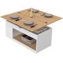 Table basse plateau relevable rectangulaire convertible en table à manger ELEA 100 cm bois blanc et façon hêtre
