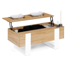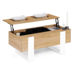 Table basse plateau relevable rectangulaire PHOENIX bois et blanc