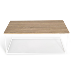 Descriptif de la table basse DETROIT design industriel bois et métal blancLe design de la table basse style industriel s'inspire des usines et de leurs ateliers. Les constructions massives et les matériaux bruts caractérisent le monde industriel. Zoom sur l'ADN de cette table basse industrielle pas