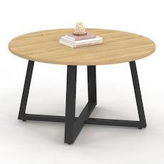 Le design industriel s'invite dans votre salon avec cette table basse ronde SELMA 70 cm bi-matière !Structure bois et pied central métal noir s'associent pour un look façon loft et un esprit chaleureux qui se mariera parfaitement avec votre décoration intérieure.Elle pourra tout à fait s'intégrer dans votre salon, au centre de la pièce ou en bout de canapé, dans votre bureau ou chambre d'amis. Son plateau rond très pratique de 70 cm de diamètre est idéal pour un apéro convivial en famille ou entre amis. Son pied araignée en métal noir lui apporte une touche d'originalité et lui assure solidité et stabilité.Au-delà de son côté authentique et robuste, ses proportions compactes en font une table fonctionnelle qui conviendra aux petits comme aux grands espaces de vie. Une taille parfaite pour circuler aisément dans votre pièce ! Optez pour le style industriel moderne et craquez pour la table basse ALIX ronde 70 cm !Dimensions de la table basse ALIX ronde 70 cm Dimensions globales : Longueur 70 cm x largeur 70 cm x Hauteur 40 cmMatériaux : plateau en PB et pied central en métalÉpaisseur des pieds : 2 x 4 cmColoris : bois et noir À monter soi-mêmeRetrouvez l'ensemble de notre collection industrielle et toute la gamme SELMA sur notre boutique en ligne !