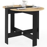 Table console pliable ronde EDI 2-4 personnes bois noir plateau façon hêtre 103 x 76 cm