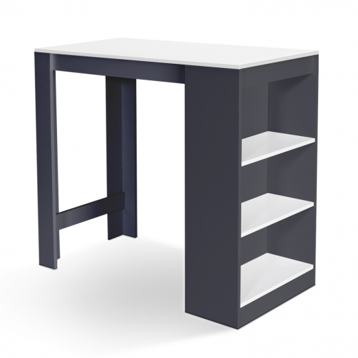 La table de bar BARTH pour 2 à 4 personnes en bois coloris gris et plateau blanc optimisera l'espace de votre cuisine !Grâce à son design moderne, ses lignes épurées et ses finitions mates, elle s'adapte idéalement à tout type d'intérieur !Avec son grand plateau de 110 cm de long, cette table mange debout accueille jusqu'à 4 personnes. Sa structure en panneaux de particules de bois (PB d'une épaisseur de 1,5 cm) en fait une table haute robuste et solide.Accompagnée de tabourets de bar, la table BARTH sera parfaite pour prendre le petit-déjeuner, manger sur le pouce, boire un apéritif ou pourra servir de plan de travail pour préparer de bons petits plats !Véritable solution de rangement pour les petits espaces, elle dispose de 3 compartiments sur le côté !Fonctionnelle et pratique, vous bénéficiez ainsi de nombreuses capacités de rangement pour vos ustensiles, couverts, vaisselle, bouteilles et condiments et les conserver à portée de main. Tout cela en optimisant l'espace ! Vous avez besoin d'une table haute de bar pour vos repas ou pour vos apéritifs mais vous manquez de place ? N'hésitez plus, ce mange debout astucieux est fait pour vous ! Pour accompagner votre table haute BARTH, découvrez tous nos tabourets de bar qui s'accorderont à merveille avec son design moderne.Dimensions de la table de bar BARTH 2 à 4 personnes bois blanc et grisDimensions globales : Longueur 110 cm x largeur 50 cm x Hauteur 103 cmDimensions des pieds : L. 10 x l. 10 x H. 101,5 cmHauteur entre le sol et le 1er compartiment de rangement : 8 cmHauteur du 1er compartiment de rangement sur le côté : 26,5 cmHauteur du 2ème compartiment de rangement sur le côté : 26,5 cmHauteur du 3ème compartiment de rangement sur le côté : 28 cmLargeur des compartiments de rangement sur le côté : 46,5 cmProfondeur des compartiments de rangement sur le côté : 23 cmMatériaux : Panneaux de particules de bois mélaminés (PB), épaisseur 1,5 cmÀ monter soi-mêmeModèle disponible en différents coloris sur notre boutique en ligne :- Table de bar BARTH 2 à 4 personnes bois blanc plateau blanc- Table de bar BARTH 2 à 4 personnes bois blanc plateau effet béton- Table de bar BARTH 2 à 4 personnes bois blanc plateau façon hêtre- Table de bar BARTH 2 à 4 personnes bois blanc plateau gris- Table de bar BARTH 2 à 4 personnes bois imitation hêtre plateau noir- Table de bar BARTH 2 à 4 personnes ajourée bois blanc plateau gris- Table de bar BARTH 2 à 4 personnes ajourée bois blanc plateau façon hêtreRetrouvez également tous nos meubles modernes sur notre boutique en ligne !