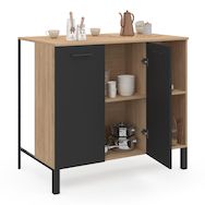 Si vous cherchez à aménager votre espace cuisine de manière optimisée, la table de bar CINA est faite pour vous !Multifonction, ce meuble vous servira à la fois de plan de travail, de rangement et de table haute pour manger sur le pouce ou prendre le petit déjeuner dans une ambiance décontractée.Son format compact est idéal pour aménager les petits espaces comme les studios et se coller contre un mur ou venir délimiter deux espaces de vie avec style ! Glissez des tabourets de bar sous le plateau pour un gain de place maximal !Très pratiques, son grand placard et ses 2 étagères ouvertes vous permettront de ranger élégamment vaisselle, petit électroménager ou encore provisions de nourriture, optimisant ainsi votre rangement !Avec ses coloris intemporels et ses lignes sobres et épurées, le mange-debout CINA se mariera avec tous les types d'intérieurs !Sa structure en panneaux de particules de bois et métal lui garantit solidité et stabilité.Design et fonctionnel, ce meuble de bar deviendra vite la pièce maîtresse de votre cuisine tout en gardant votre intérieur bien ordonné !Dimensions de la table de bar îlot CINADimensions globales : Longueur 100 cm x largeur 60 cm x Hauteur 90 cmDimensions d'une porte ! L.34 x H.74 cmDimensions intérieures de la double porte : L.65 x l.27 x H.72 cm - étagère ajustableDimensions niches : L.30 x l.27 x H.36 cmProfondeur de l'espace de bar : 30 cmEspace entre les 2 pieds : 95 cmMatériaux : panneaux de particules de bois (PB), métalColoris : bois façon hêtre et noirÀ monter soi-mêmeRetrouvez également nos meubles et éléments de cuisine sur notre boutique en ligne !