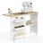 Le bureau pour machine à coudre pliable à roulettes, blanc et bois façon hêtre, au style contemporain et épuré s'intègre parfaitement dans tous les types d'intérieurs.Son grand plateau dépliable de 118 cm offre un bel espace de travail pour installer votre machine à coudre, vos outils et vos tissus, tout en conservant un plan de travail dégagé et fonctionnel.Doté d'une étagère principale spacieuse et de trois petites étagères, cette armoire de couture permet d'organiser facilement fils, canettes, ciseaux et autres fournitures. Un vrai plus pour garder un espace couture ordonné et pratique.Son design pliable est idéal pour les petits espaces : une fois replié, il se transforme en un meuble discret au look sobre et moderne. Grâce à ses roulettes, vous pouvez le déplacer facilement d'une pièce à l'autre, selon vos besoins.Stable et robuste grâce à sa structure en panneaux de particules de qualité, vous pourrez coudre en toute sérénité.Multifonction et gain de place, ce bureau astucieux peut également servir de table d'appoint pour réaliser tous vos travaux manuels ou en meuble de rangement. Son look blanc et bois façon hêtre s'accorde parfaitement à une décoration scandinave, moderne ou naturelle.Découvrez dès maintenant les lignes sobres et les finitions soignées de ce meuble 2-en-1 à petit prix !Dimensions de la table de couture pliable à roulettes Meuble pour machine à coudre : Dimensions globales déplié : Longueur 118 cm x largeur 40 cm x Hauteur 80 cmDimensions globales plié : L. 59 x l. 40 x H. 80 cmDimensions de la grande étagère : L. 52,5 x l. 21 x H. 41,5 cm Dimensions des petites étagères : L. 36,5 x l. 11,5 x H. 8,5 cm Matériaux : Panneau de particules de bois (PB)Coloris : bois façon hêtre et blancVisserie incluseA monter soi-mêmeRetrouvez tous nos modèles de bureaux sur notre boutique en ligne.
