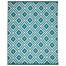 Egayez votre terrasse ou votre entrée avec ce joli tapis extérieur BAHAMAS bleu canard de 470 x 270 cm !Grâce à ses motifs géométriques bleus et blancs, apportez une touche de couleur en un tour de main et appréciez vos soirées d'été comme vos moments de détente au soleil. Fabriqué à 100% en polypro