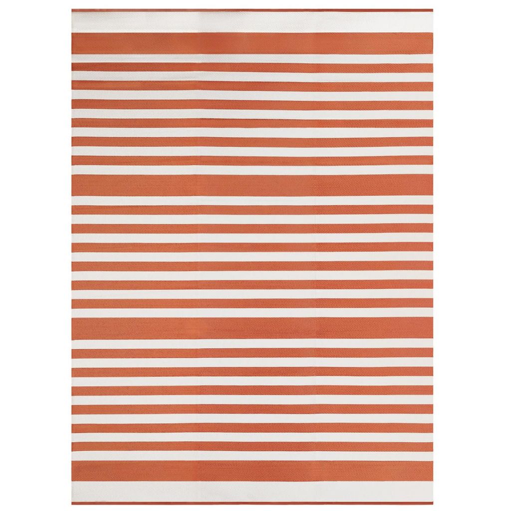 Egayez votre terrasse ou votre entrée avec ce joli tapis extérieur RAYURES terracotta de 370 x 270 cm ! Grâce à ses rayures terracotta et blanches, apportez une touche de couleur en un tour de main et appréciez vos soirées d'été comme vos moments de détente au soleil. Fabriqué en 100% polypropylène,