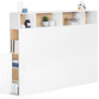 Tête de lit sur pied CLEO 145 cm avec rangements fermés et niches blanc et façon hêtre