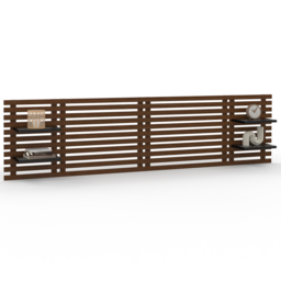 Tête de lit suspendue en lattes AVA 240 cm bois vieilli et étagères noires