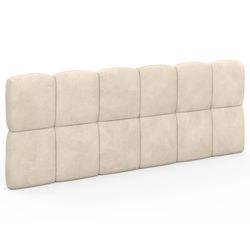 Craquez pour le look épuré et intemporel de la tête de lit murale NUAGE au coloris beige. Conçue en velours, cette tête de lit de 160 cm de long finalisera la décoration de votre chambre en y apportant une touche lumineuse et tendance !Adaptable à tous les lits 140 cm et 160 cm, la tête de lit NUAGE