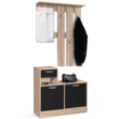 Apportez une touche moderne à votre intérieur en optant pour ce vestiaire d'entrée avec miroir et paroi murale en lattes aux coloris façon hêtre portes noires. Ce meuble s'adaptera parfaitement à votre décoration grâce à son design fonctionnel, chic et tendance ! L'association des deux couleurs procure à ce vestiaire un design très contemporain. La partie supérieure est composée d'un miroir et de 3 patères en inox pour suspendre vos vestes et manteau. Doté d'un miroir et de 3 patères double crochet en quinconce, ce meuble 2 en 1, meuble à chaussures et portant, arbore un style soigné tout en restant fonctionnel au quotidien.Avec son meuble bas composé de 2 abattants, d'1 niche et d'1 tiroir, ce vestiaire comporte tous les éléments indispensables pour organiser votre intérieur ! Grâce à son mécanisme à ouverture facile, vous pourrez ranger jusqu'à 8 paires de chaussures soit 16 chaussures. Sa niche d'une hauteur de 13 cm vous permettra de déposer vos clefs, un vide poche ou tout autre objet. Son tiroir d'une hauteur de 11,5 cm sera idéal pour ranger vos papiers et documents en toute discrétion. Maxi gain de place, il apporte une valeur ajoutée à votre vestibule en le décorant et en le meublant sans le surcharger.2 éléments aux formes asymétriques à combiner ou à dissocier selon vos envies ! Optez pour ce vestiaire d'entrée avec miroir multifonction et embellissez votre entrée !Dimensions du vestiaire d'entrée avec miroir design hêtre portes noires- Dimensions totales : Longueur 80 CM x largeur 30 CM x Hauteur 180 CM- Dimensions du meuble à chaussures : L. 80 x l. 30 x H. 73 CM- Dimensions des deux range-chaussures : L. 37 x l. 30 x H. 37 CM- Dimensions de la niche : L. 37 x l. 30 x H. 13 CM- Dimensions du tiroir : L. 37 x l. 30 x H. 11,5 CM- Dimensions de la partie supérieure du portant : L. 80 x l. 20 x H. 100 CM- Dimensions du miroir : L. 30 x H. 56 CM- Matériaux : panneaux de particules en bois 1,5 CM et miroir en verre- Coloris : hêtre et noir- Kit de fixation inclus- À monter soi-mêmeRetrouvez nos autres modèles également disponibles sur notre site pour aménager votre entrée.Retrouvez toute notre collection scandinave sur notre boutique en ligne !