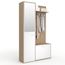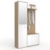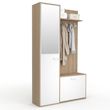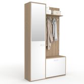 Ce vestiaire complet propose une grande capacité de rangement, grâce à une structure bien pensée : étagères, penderie, miroir, banc et meuble à chaussures sont intégrés en un seul meuble !La partie gauche comprend une colonne avec 4 étagères amovibles, parfaites pour accueillir vos sacs, paniers, éc