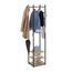 Pensée pour les petits espaces, elle combine tout ce qu'il faut pour un rangement optimal : 4 barres de suspension, 3 étagères, 2 crochets et 4 tiges métalliques pour suspendre vos vêtements et accessoires.Les 4 tubes portants, positionnés à 138,5 cm du sol, permettent de suspendre vos vêtements longs sans qu'ils ne traînent. Les 3 étagères placées près du sol quant à elles offrent un bel espace pour vos chaussures, paniers ou boîtes de rangement.Astucieux, 2 crochets robustes supplémentaires accueilleront sacs, foulards ou encore ceintures tout en les gardant à portée de main. Vous disposez également de 4 tiges en métal placées en hauteur, idéales pour suspendre des cintres ou organiser des accessoires.Le mariage du métal noir et du coloris bois apporte une touche design qui s'adapte à tous les styles d'intérieur.Solide et stable, sa structure en métal et en panneaux de particules de assure une belle résistance dans le temps.Ce petit vestiaire d'entrée malin vous offre un vrai gain de place, tout en gardant vos affaires organisées et accessibles au quotidienDimensions de la penderie d'entrée RICODimensions globales : Longueur 40 cm x largeur 30 cm x Hauteur 170 cm 4 tubes horizontaux à 15 cm d'écart, et 138,5 cm du sol 4 tiges de métal pour suspension à 114 cm du sol 2 crochets à 92 cm du sol 3 étagères à 15 cm d'écart et 2 cm du sol Matériaux : Métal et panneau de particules Coloris : Noir et BoisÀ monter soi-mêmeRetrouvez l'ensemble de nos vestiaires d'entrée et meuble d'entrée sur notre boutique en ligne !