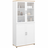 Vitrine buffet haut H. 176 cm vaisselier VITO 4 portes blanc et bois