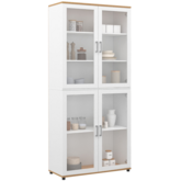 Vitrine buffet haut H. 176 cm vaisselier VITO 4 portes vitrées blanc et bois