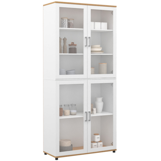 Ajoutez une touche d'élégance à votre intérieur grâce à notre armoire vitrine 4 portes VITO blanche et bois. Ce meuble allie modernité et tradition, offrant un espace de rangement fonctionnel tout en mettant en valeur vos objets décoratifs ! Les 4 placards offrent un accès facile à vos affaires tout