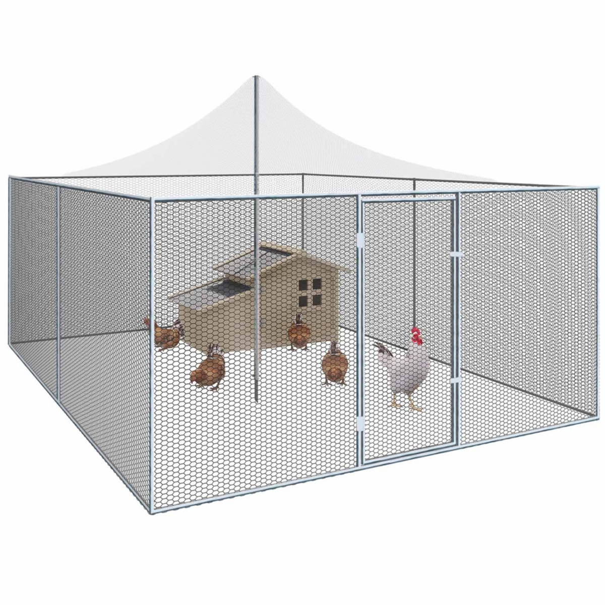 Volière 12m² enclos poulailler 3x4M parc grillagé toit filet acier galvanisé
