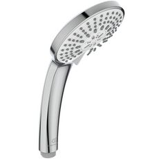 La douchette Idealrain B9403AA conçue par Ideal Standard est en plastique chromé double coque, robuste et légère. D'un diamètre de 10 cm, elle procure un grand confort d'utilisation sous la douche. Cette douchette spa est équipée d'une fonction 3 jets, à choisir entre pluie bien-être, pluie concentrée ou effet massage, idéal après le sport ou une journée chargée. Elle est écologique et économique : équipée d'un réducteur de débit à 8l/min sans perte de pression, elle permet de réaliser des économies d'eau chaque jour tout en profitant d'une douche revigorante. Idealrain se nettoie en un seul geste grâce à ses picots en silicone et un traitement anti-calcaire qui lui offre également une grande résistance au temps. Elle s'utilise par toute la famille grâce à sa double coque Cool Body qui maintient le corps de la douchette tiède même si l'eau est chaude. Elle est universelle et s'adaptera à tout système de douche grâce à ses dimensions pratiques : 22,5cm de hauteur pour 3,3 cm d'épaisseur. La douchette double coque Idealrain est un produit de qualité Ideal Standard fabriqué en Europe et garantie 5 ans constructeur.