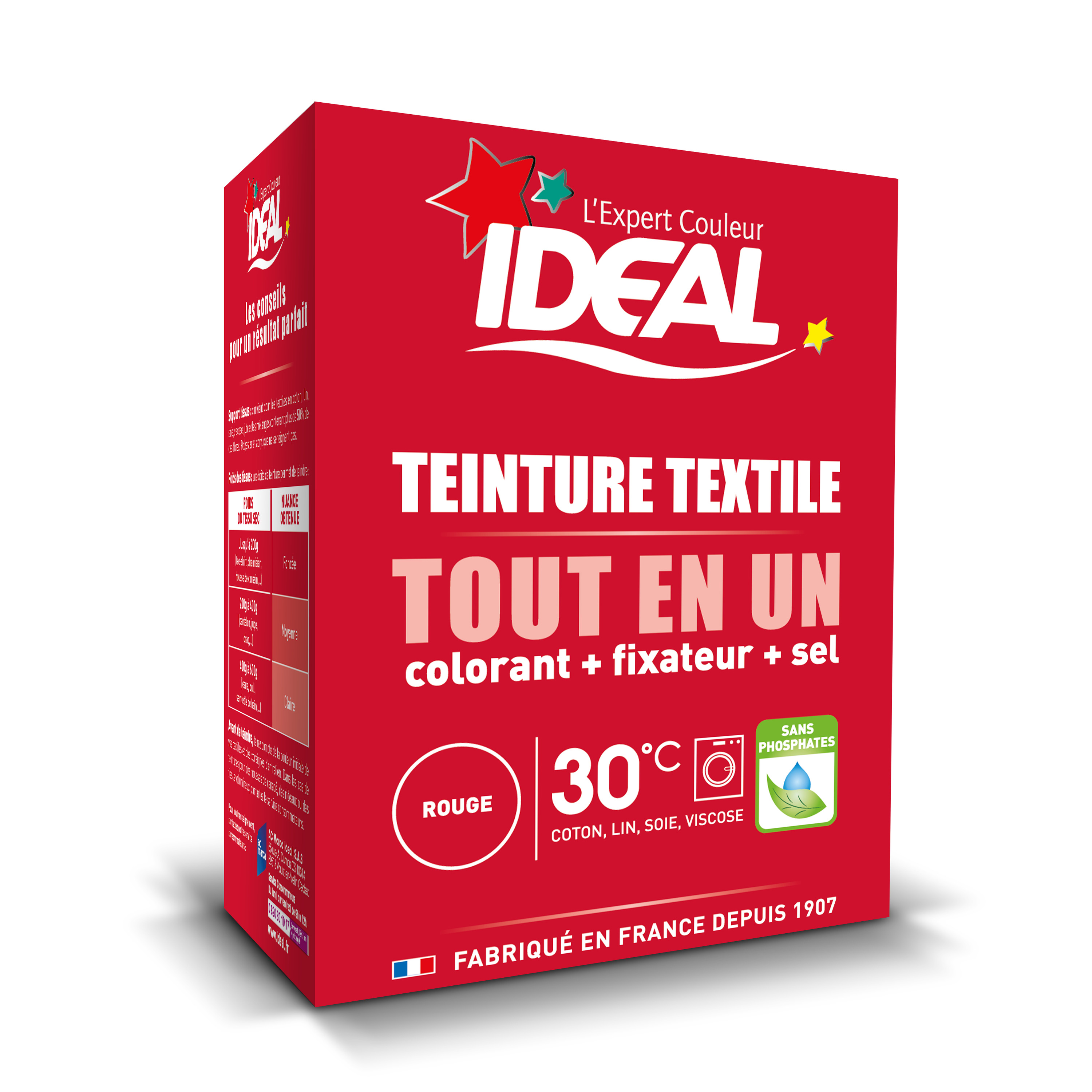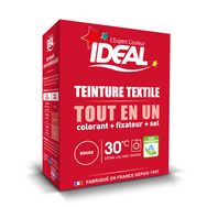 Tout en un : colorant + fixateur + sel inclus. Pratique : 1 seul sachet que l’on dépose directement dans le tambour