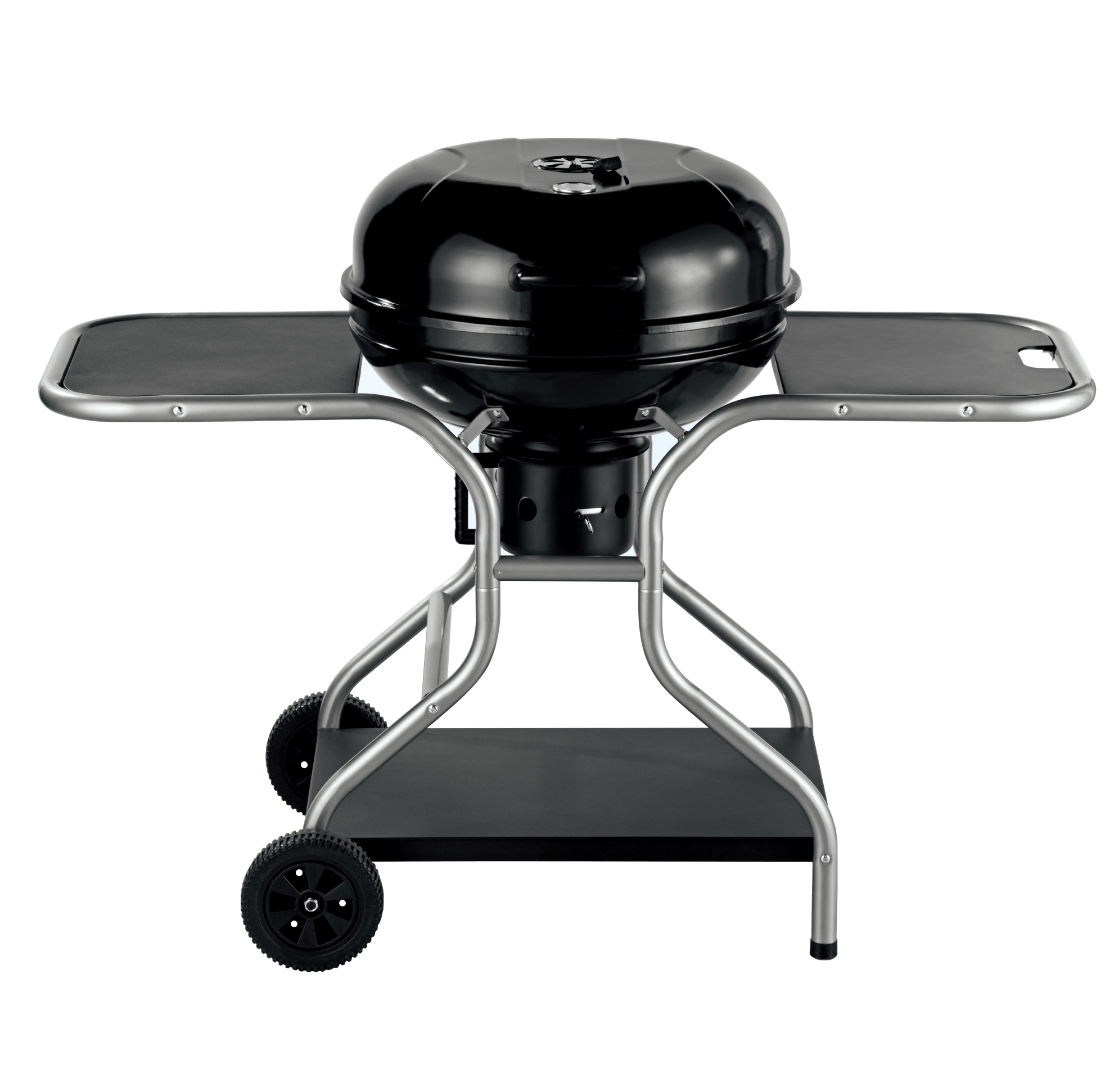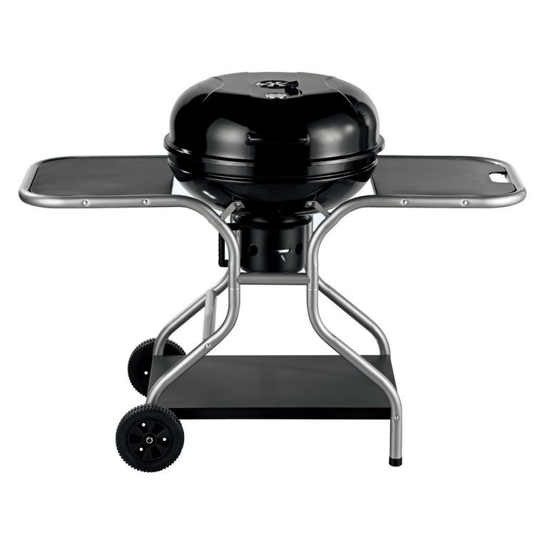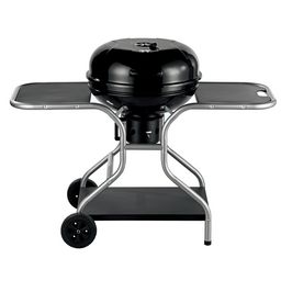 Barbecue charbon de bois esprit américain. Équipé d'un couvercle avec thermomètre de cuisson, d'une ventilation ,d'un récupérateur de cendres de 2 tablettes latérales et de 2 grilles de cuisson. Il possède également 2 roulettes pour faciliter le déplacement. Ce barbecue conviendra parfaitement pou