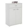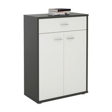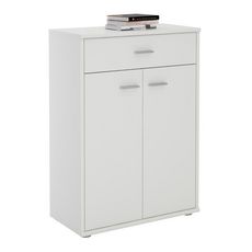 ... est disponible dans différents coloris très modernes qui vous permettront de l'associer facilement avec le style de votre intérieur. Grâce à son grand tiroir et l'espace libre derrière les 2 portes, avec une tablette de séparation, vous pourrez ranger toutes vos affaires du quotidien et les mettre ainsi à l'abri. Enfin, le mélaminé confère à ce meuble de rangement une meilleure résistance aux frottements et aux salissures et le rend très facile d'entretien.