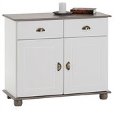 Buffet COLMAR en pin massif, 2 tiroirs et 2 portes, lasuré blanc et taupe
