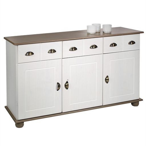 Buffet COLMAR en pin massif, 3 tiroirs et 3 portes