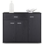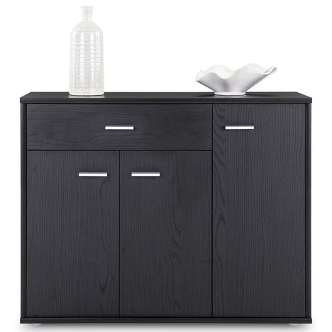 - Le buffet est fabriqué à partir de panneaux de particules de bois, recouvert d'un mélaminé disponible dans plusieurs coloris.