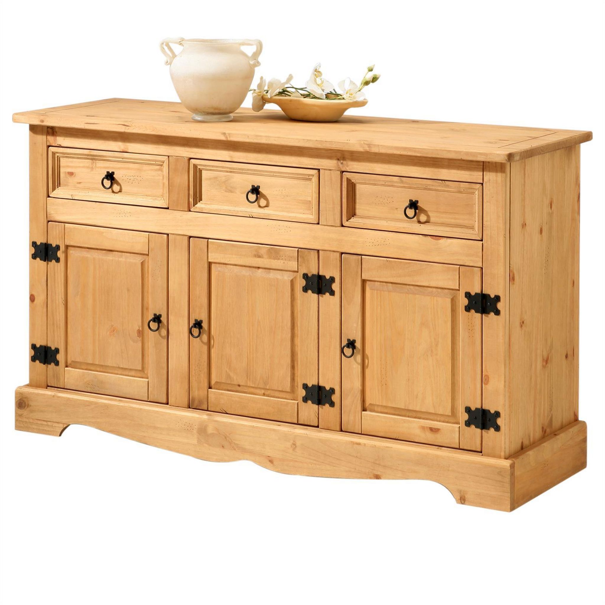 Buffet en pin TEQUILA, 3 tiroirs et 3 portes, en pin massif