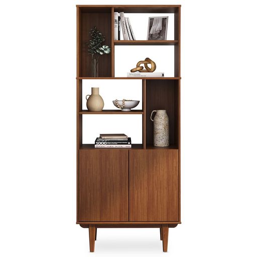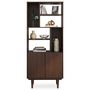 Ce buffet haut en bois séduit par son design inspiré du style mid-century. Pratique et esthétique, il offre deux portes avec une étagère réglable à trois hauteurs pour optimiser votre rangement. Sa partie supérieure propose six compartiments ouverts, parfaits pour exposer livres, objets déco ou souvenirs. Avec sa hauteur de 188 cm, il s'intègre parfaitement dans un salon, une salle à manger ou un bureau au style vintage, moderne ou scandinave.